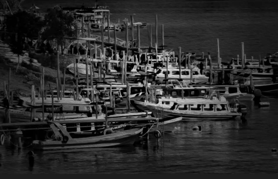 “Lanchas”, 16″ x 24″, mixed medium, US$ 2,000.