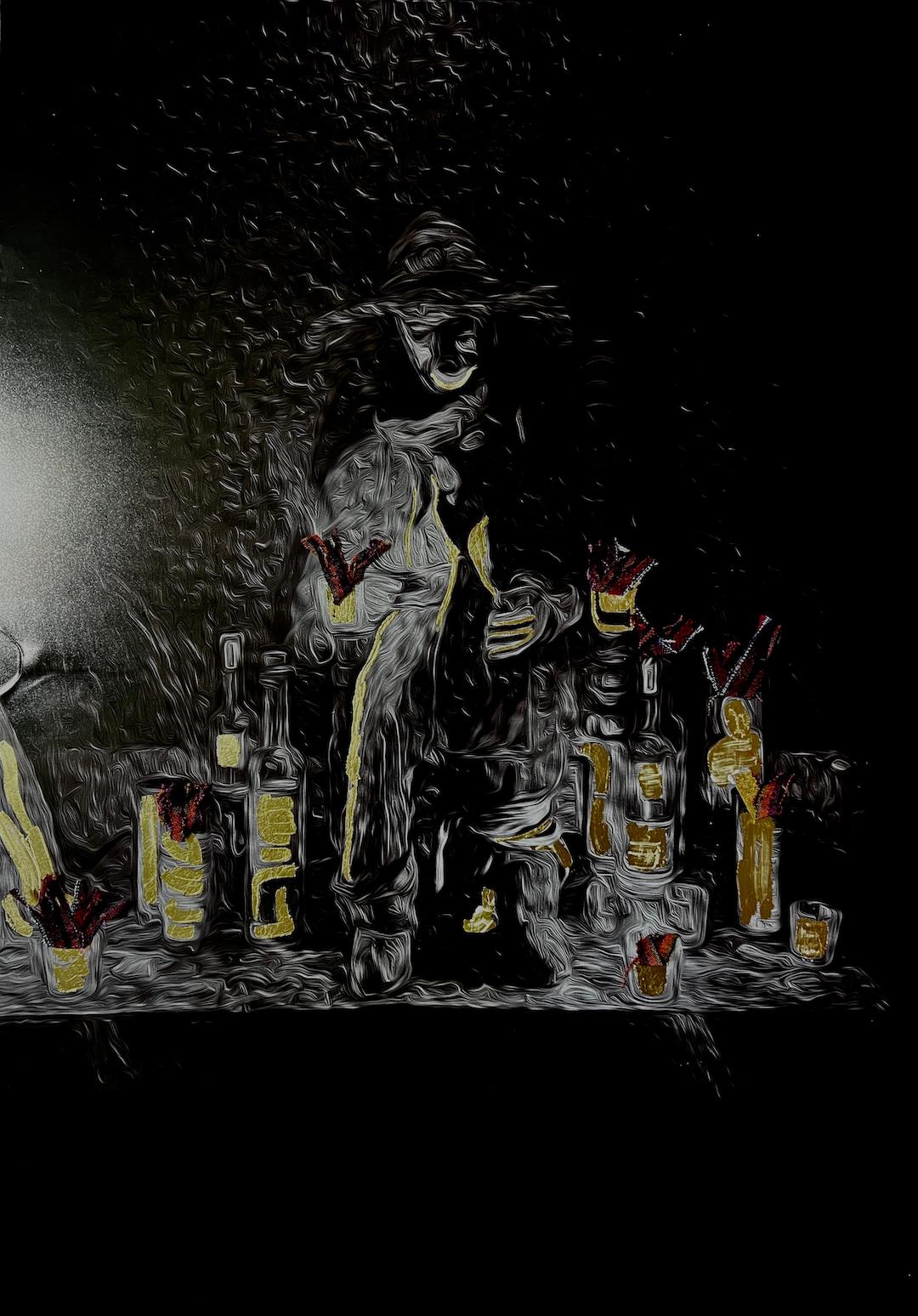 “Sonata de medianoche”, 24″ x 40″, mixed medium, US$ 3,000.
