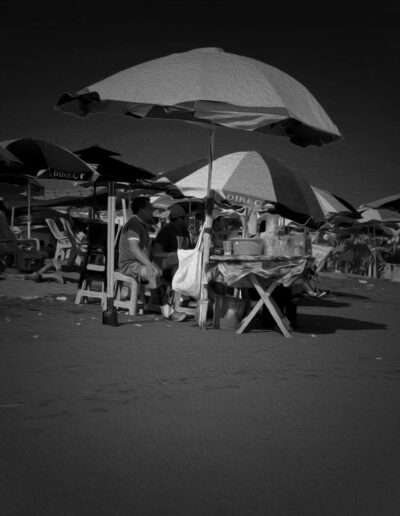 “Playa pública”, 11″ x 14″, mixed medium, US$ 1,200.
